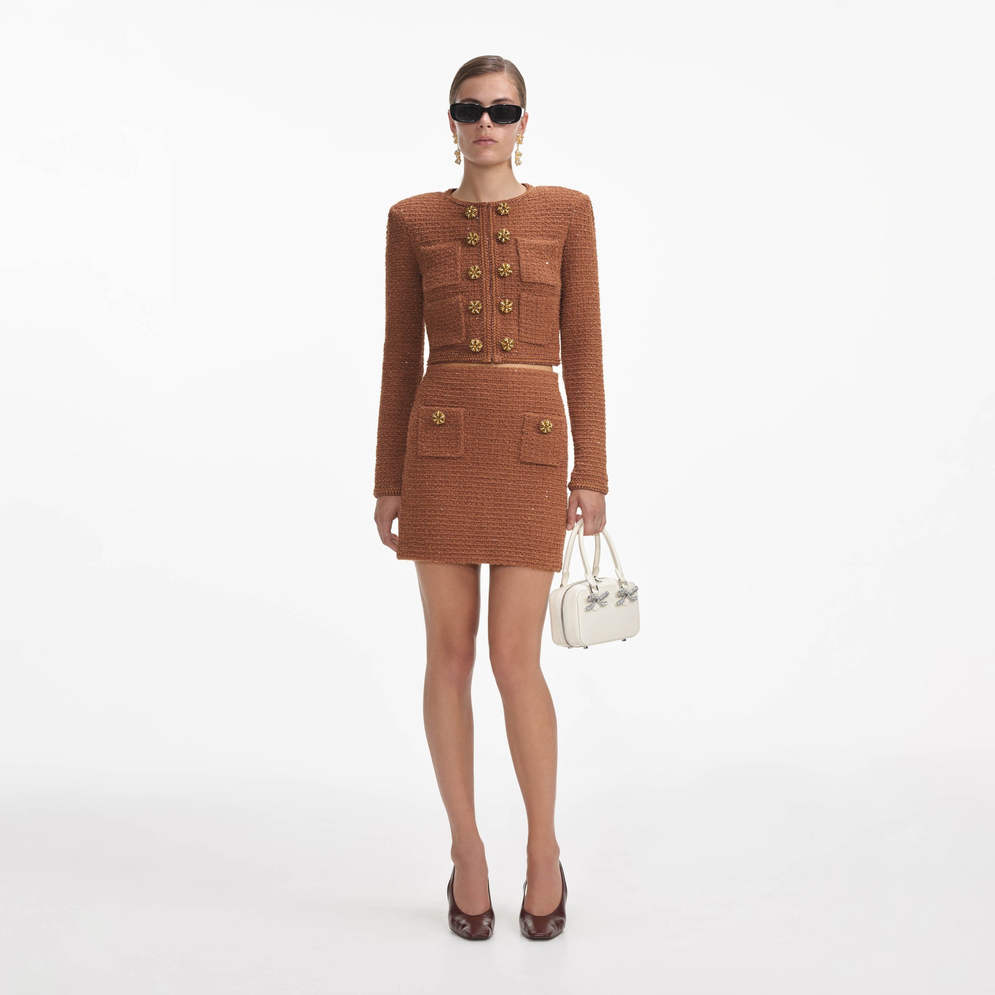 Front view of a woman wearing the Cream Boucle Collared Mini Dress