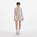 Cut from rhinestone mesh, this bodycon mini encases the form to dazzling effect. Its ruffle and diamanté-trimmed bodice adds a playful touch – topped by a sparkling zip just waiting to be opened.