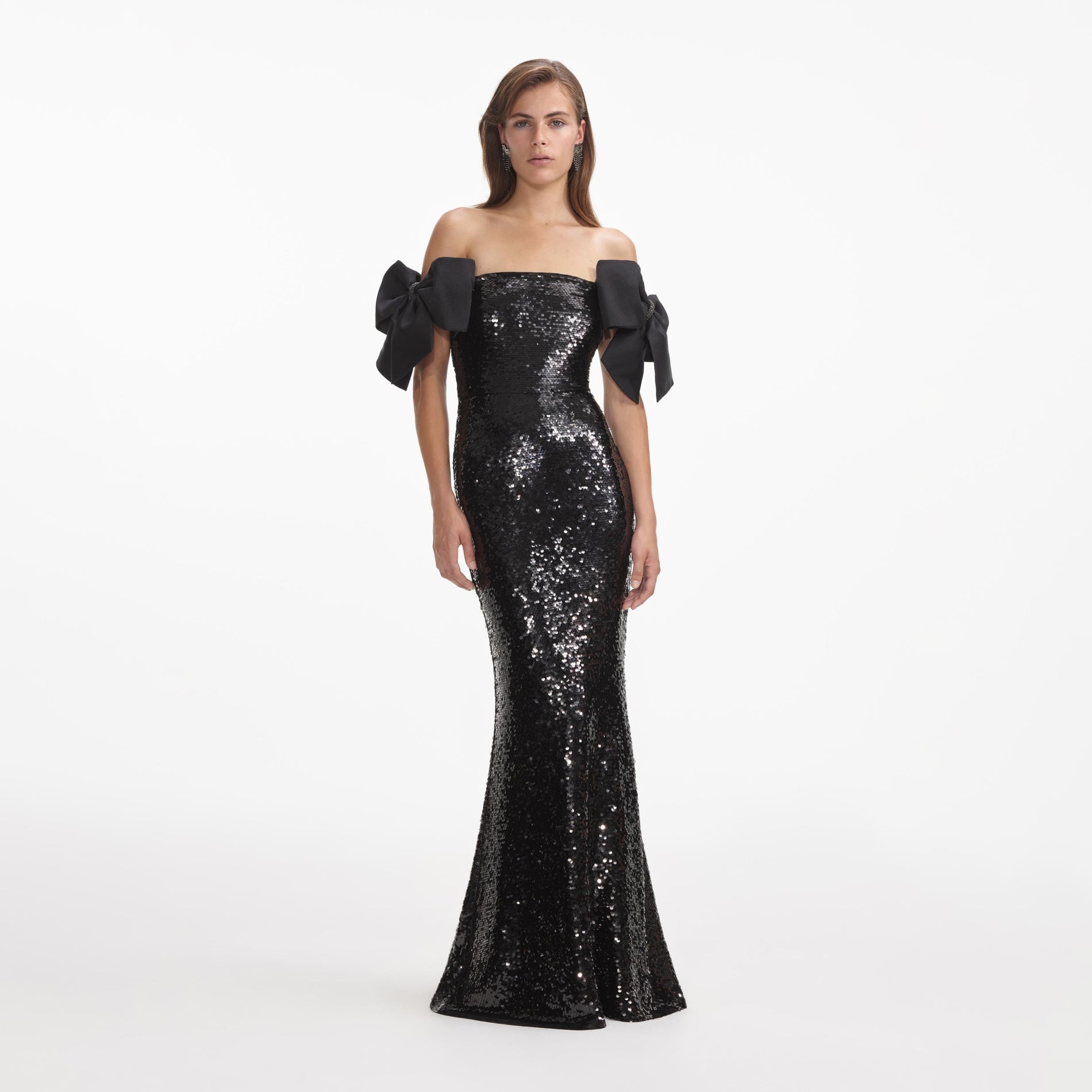 Black Sequin Bow Maxi Dress