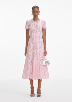 Pink Lace Embellished Midi Dress-PINK
