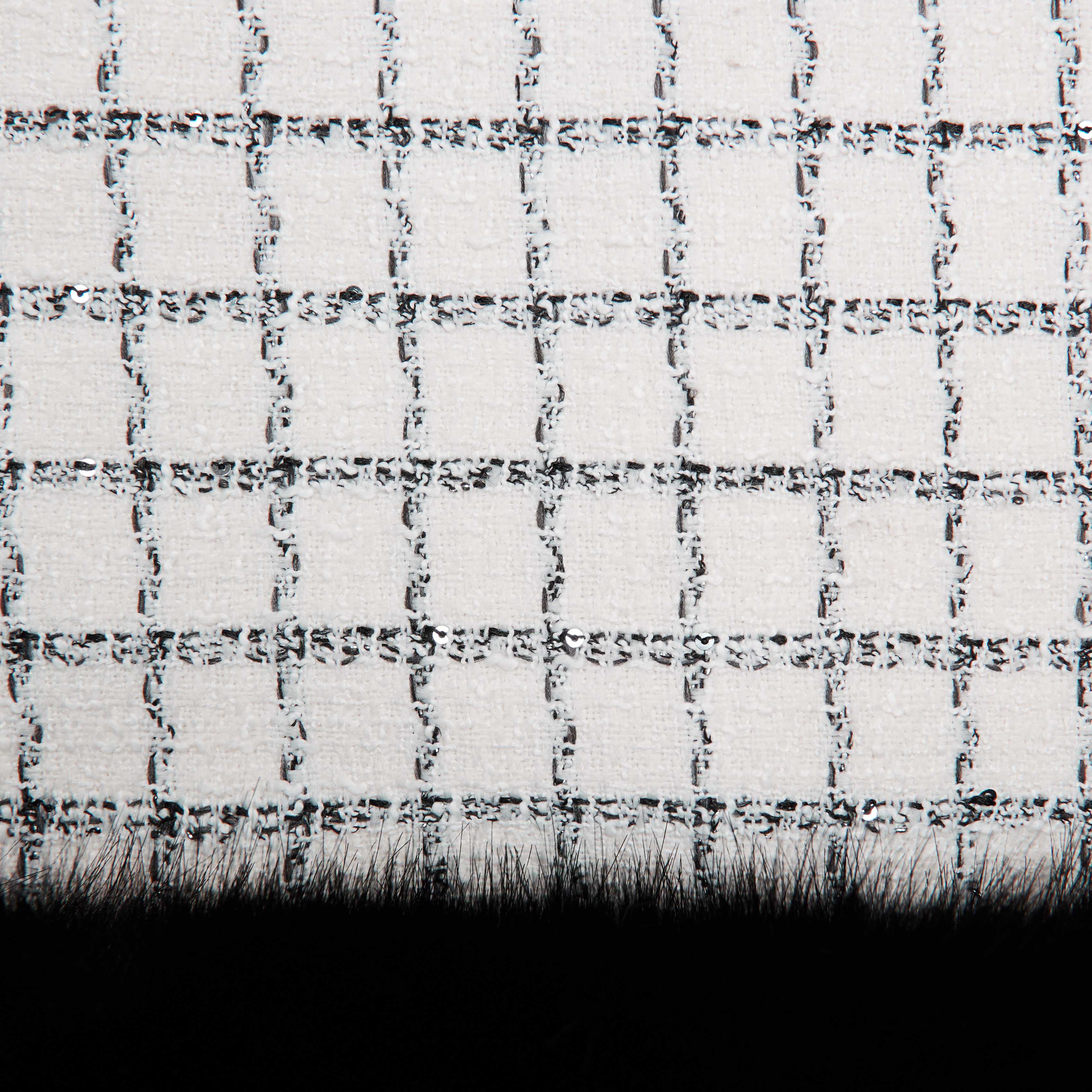 A faux fur trim adds instant glamour to the preppy energy of this check bouclé mini skirt. Pair its flattering high waist fit with our matching jacket and heels for a new take on the skirt suit.