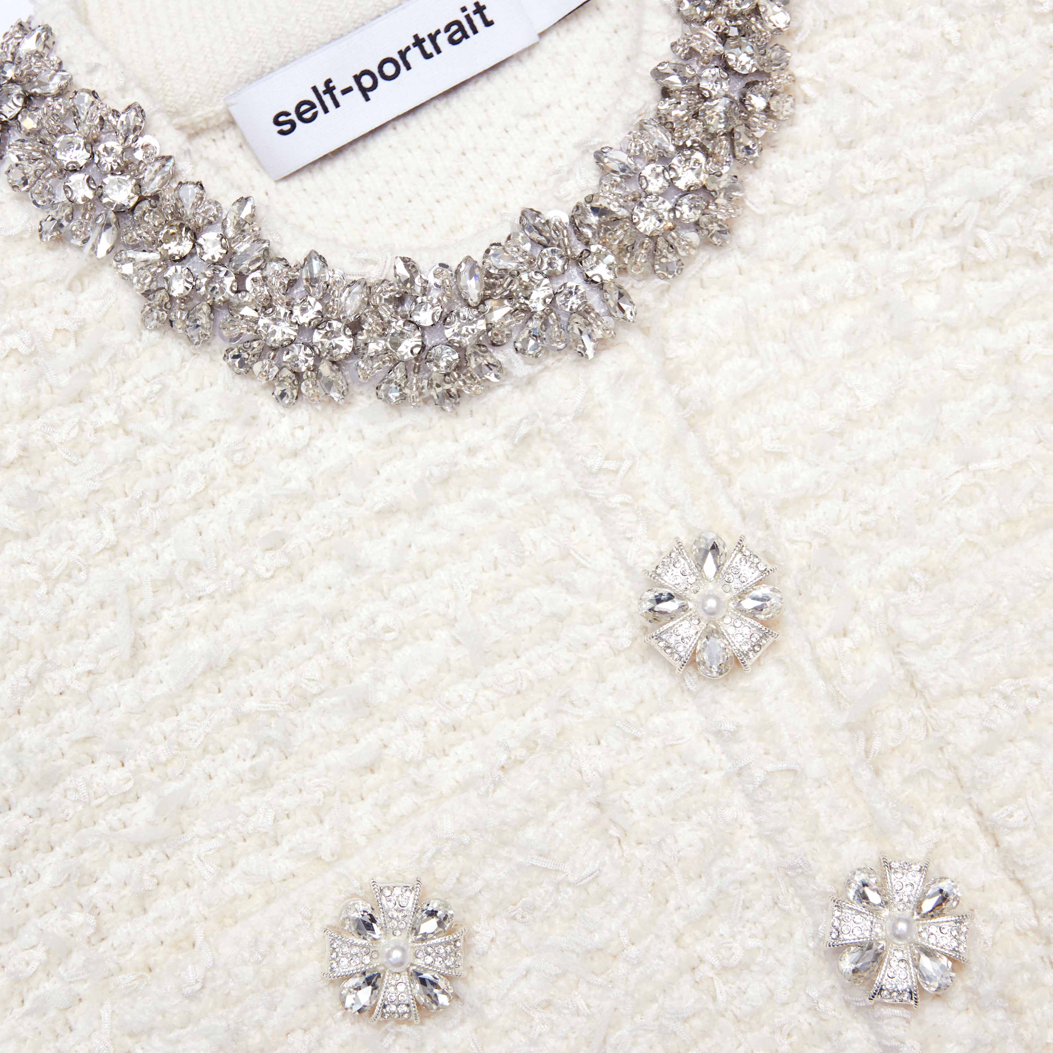 The best things in life are soft and sparkling; this bouclé knit cardigan boasts diamanté trims and sparkling buttons to boot. Pair with jeans for brunch or add the matching skirt for date night.