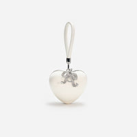 Pure romance comes courtesy of this cream satin clutch bag, crafted in the shape of a heart. Featuring a crystal bow key ring, the detachable strap allows it to hang elegantly from the wrist.