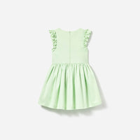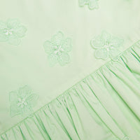 Cut from minty green cotton, this mini dress brings a breath of fresh air. Decorated with embellished flower motifs and gathered trims – style it with our bow-topped headbands for fun in the sun.