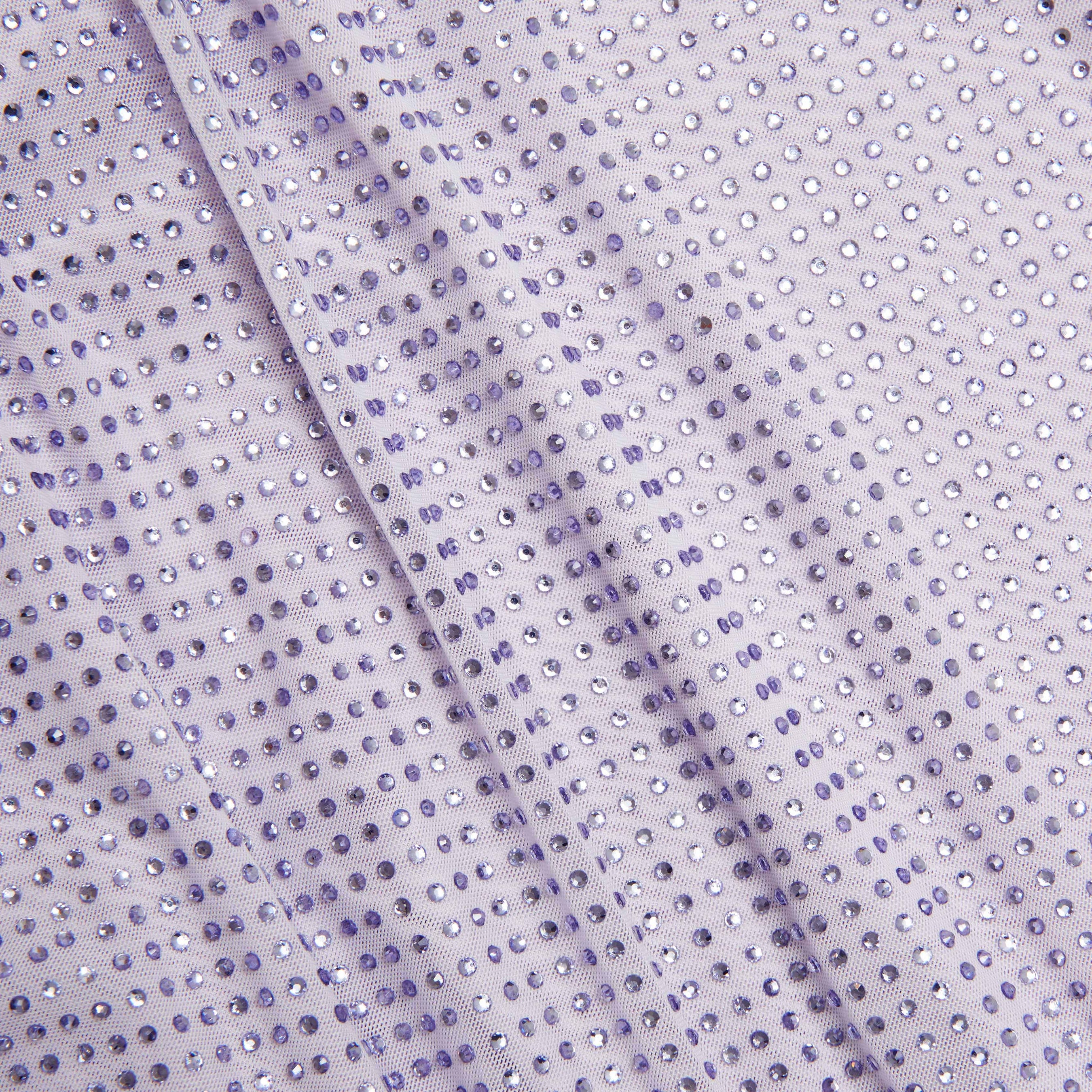 Shine from head-to-toe in this lilac rhinestone maxi. An asymmetric neckline and single sleeve design add fashion-forward detail – show off its skirt slit with heels for a statement-making look.