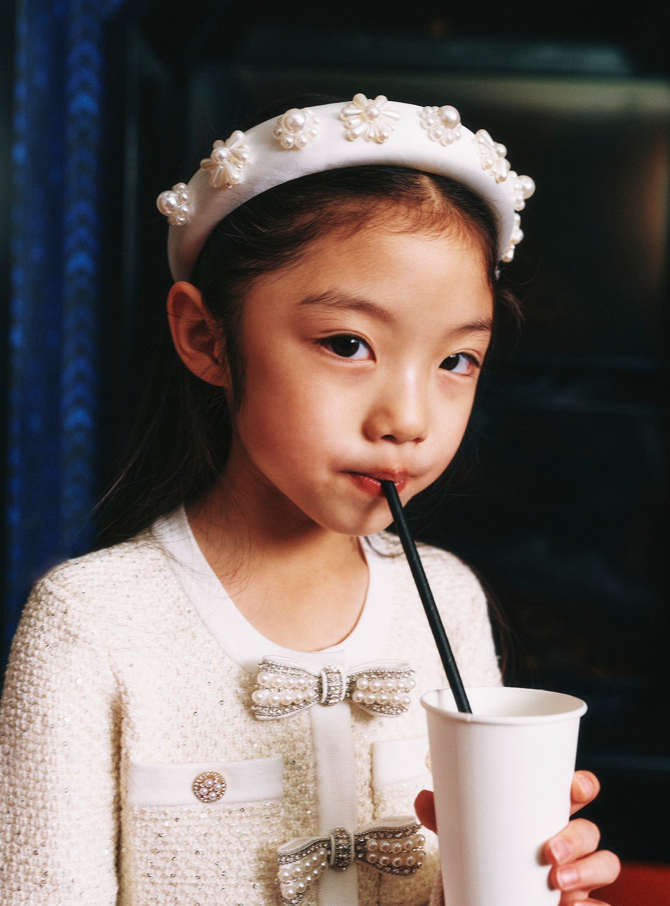 Pearl Flower Satin Head Band