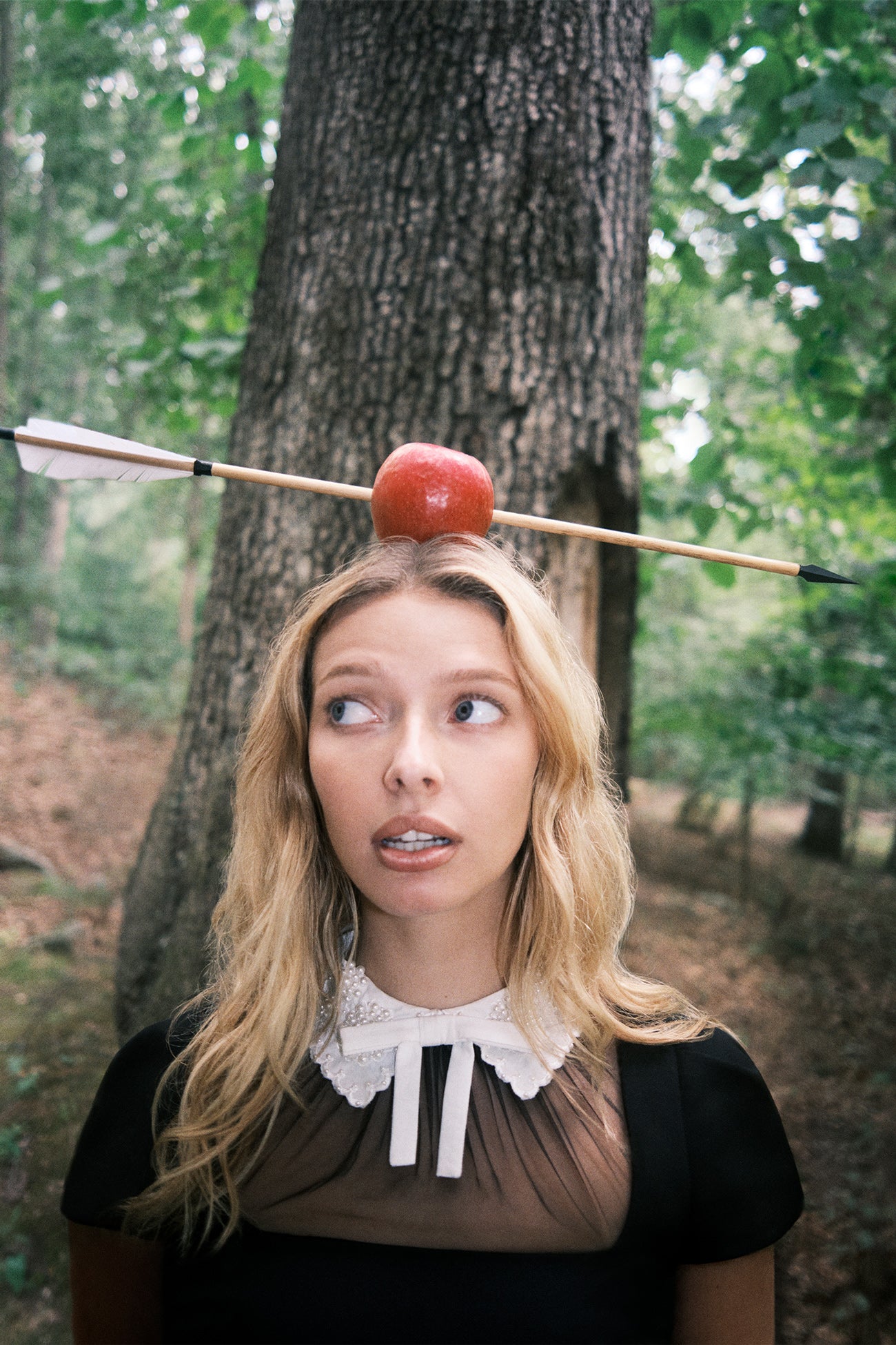 Black Crepe Bow Collar Midi Dress