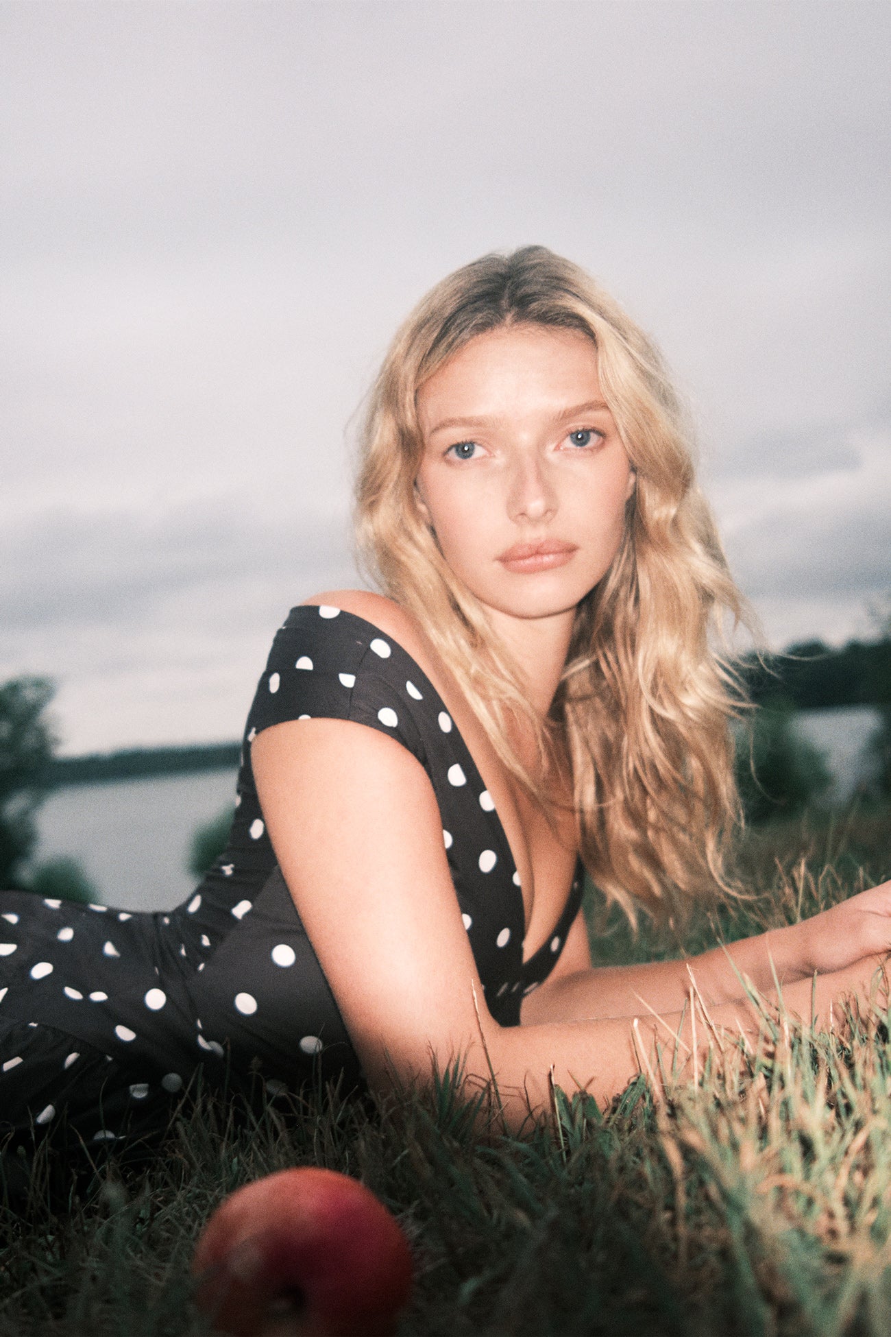 Polka Dot Satin Lace Maxi Dress