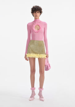 Pink Knit Cut Out Bodysuit-PINK