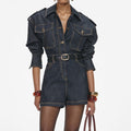 Function meets style in this indigo denim playsuit, which boasts a relaxed fit, dropped shoulders and menswear-inspired accents. Style it with flats for brunch and switch to heels for a night out.