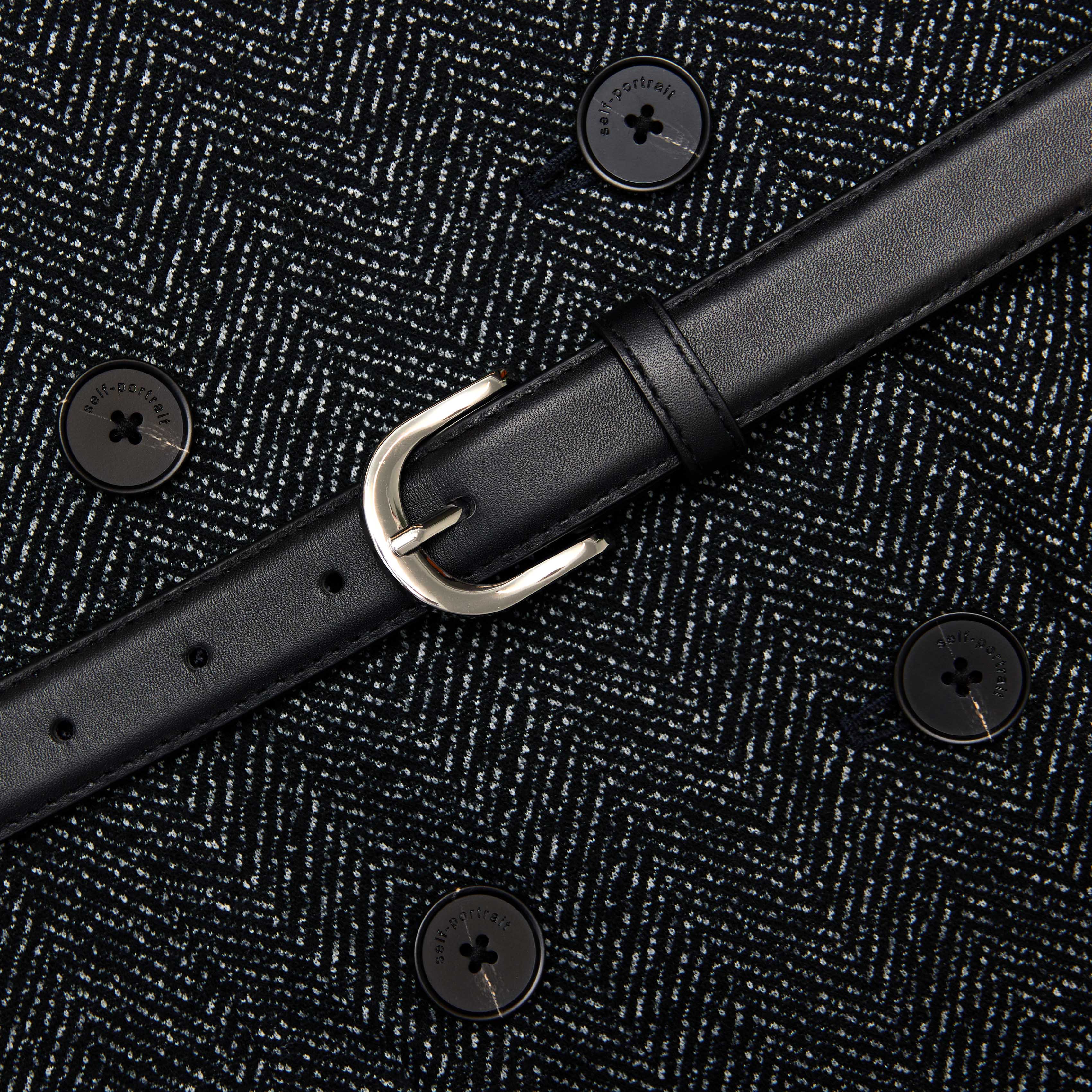 Tailored to flatter, this double-breasted herringbone wool dress defines timeless chic. An open neckline frames the figure above a sleek midi skirt – pair with heels for an invite-only occasion.