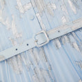 Crafted with metallic floral chiffon for a party-friendly feel, this dress' ruffled bodice echoes its twirl-worthy pleats, while a waist-cinching belt completes its flattering silhouette.