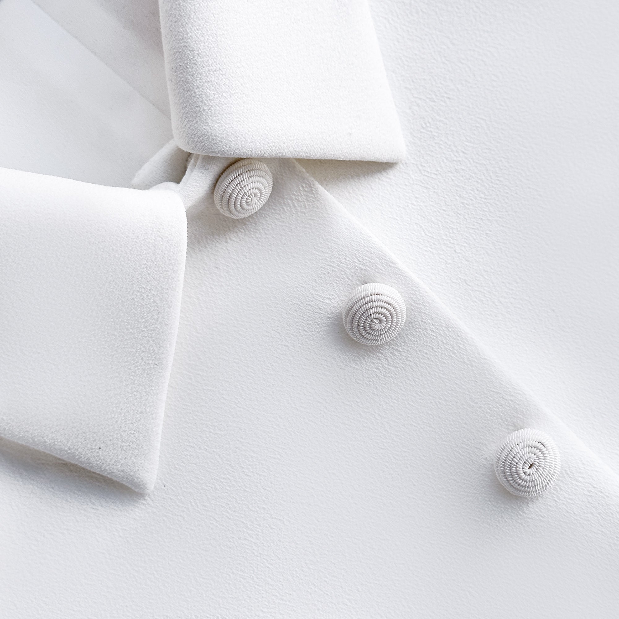 Whether you're fitting out your bridal wardrobe or after a chic holiday ensemble, this dreamy jumpsuit takes the cake. Cut from white crepe for a smooth fit and structured finish, its tailored vest-style bodice is dotted with diamanté buttons and sits atop detachable flared trousers for a sleek yet timeless silhouette. Pair it with your best jewels and stilettos for a compliment-worthy look. Equal parts feminine and street-ready, this top is cut from true blue denim for its soft yet sturdy feel. Alongside a flattering square neckline, it has a sculpted and tailored fit, which is accentuated with stitched panels and a flattering cropped hem. Pair it with jeans for a 90s-inspired double denim look. Check the Size Guide to find your perfect fit.
