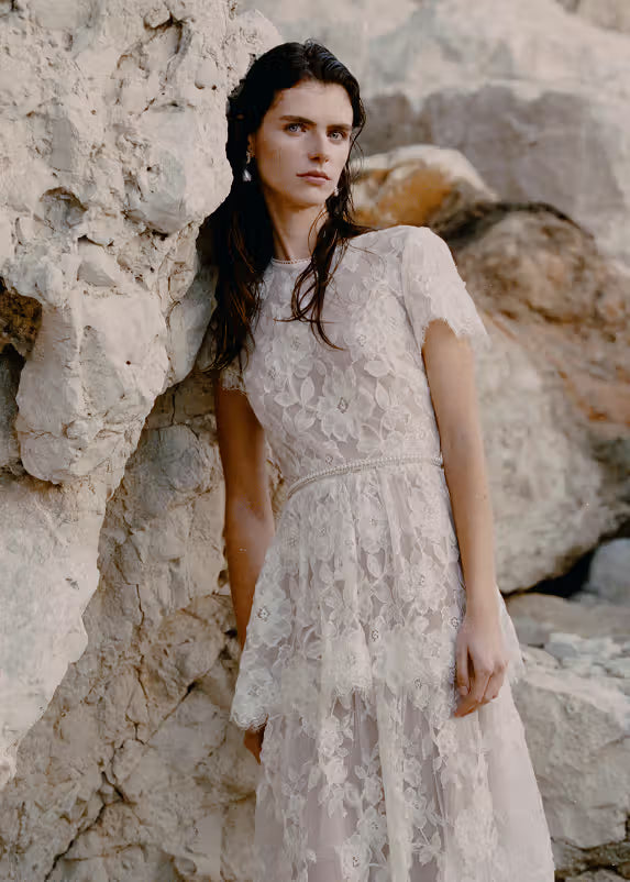This dress emanates pure, photo-ready romance thanks to its rich 3D floral lace, which cuts a flattering fit-and-flare silhouette from its mock neckline to its twirl-worthy midi skirt.